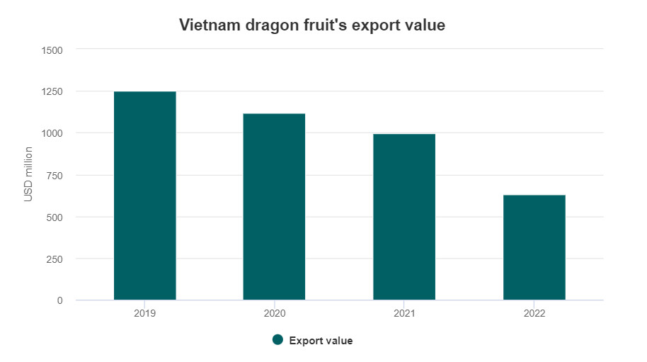 However, statistics of the General Customs found that from 2019 to now, Vietnam’s dragon fruit export turnover has continuously decreased sharply. In particular, in 2021 and 2022, dragon fruit has fallen out of the top USD exchange rate export products of Vietnam. In five codes, the export turnover of this item reached just over USD 632 million, down nearly 39% compared to 2021 and down over 49% compared to the peak of 2019.